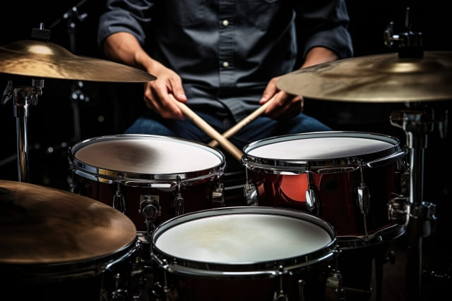 シンバルはZildjianのK Customシリーズをメインとしているため、同ブランドの低価格帯A Custom(ハイハット約3万円、クラッシュ約2万円)が代替として効果的です。繊細な音色と崎山氏特有の抜けの良いサウンドを意識しましょう。セットアップは22インチバスドラム、10/12/16インチのタムが基本構成となります。